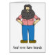 A great card for any hirsute hipster with a beard! A cartoon of a man with an enormous dark beard, standing with his hands on his hips. The image is set against a white background and accompanied by the words 'Real men have beards'.
