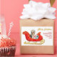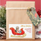 On these Holiday decorative stickers, a Bearded Collie Dog sits in a pretty red and gold decorative sleigh. Beside the dog sits gift packages tied with colourful bows. The gold script text at the right says "MERRY CHRISTMAS" and your custom text is in red. Perfect for your Christmas correspondence or gift packages! There are many other breed images and products at Dog Village.