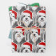 Bearded Collie Lover's Christmas Gift Wrap. Adorable Beardie wearing a Santa hat patterned design on wrapping paper sheets. Perfect for wrapping up gifts for your favourite dog mum or dog dad.