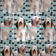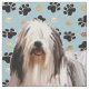 The Bearded Collies and paw prints fabric is a great idea for dog crate covers, curtains, clothing, and home decor. ew up a great gift for someone you know who own and loves a Beardie. Each set of two dogs is approximately 7 by 7 inches.