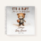 Cute sports-themed "It's A Boy and We Can Bearly Wait!" Teddy Bear American Football Player Boy Baby Shower Guest Book notebook design.