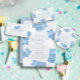 This cute "we can bearly wait" boy baby shower sticker features a light baby blue background with blue gummy bears, clouds, and stars. Personalise it for your needs. You can find matching products at my store.