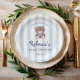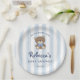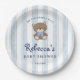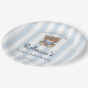 Bearly wait blue retro stripes vintage baby shower paper plate