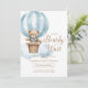 Bearly Wait Boy Teddy Bear Baby Shower Invitation features an adorable watercolor illustration of a teddy bear in a hot air balloon against soft clouds.