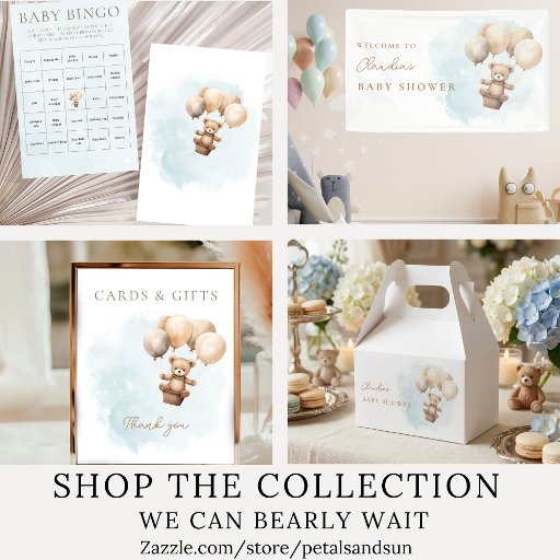 Get ready to celebrate — we can bearly wait for baby’s arrival! This adorable baby shower invitation features a sweet hand-painted watercolor teddy bear holding beige balloons, floating against a dreamy blue sky sprinkled with soft watercolor stars. A perfect mix of whimsy and charm, it fits beautifully with neutral, modern, and gender-neutral baby shower themes.