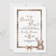 This elegant neutral baby shower design features a soft teddy bear illustration with warm beige and brown tones, framed in a delicate scalloped border. The timeless typography and cozy aesthetic create a charming woodland-inspired look, perfect for celebrating a little one on the way. Ideal for classic, gender-neutral baby showers with a sweet and sophisticated style that pairs beautifully with matching decor items in a complete collection.