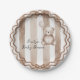 This Bearly Wait paper plate design features a soft teddy bear illustration paired with warm beige and brown vertical stripes, finished with an elegant scalloped border and bow accents. The neutral color palette and classic style create a cozy woodland-inspired look, perfect for refined baby shower table settings. Designed to coordinate seamlessly with the complete Bearly Wait baby shower collection for a cohesive and timeless celebration aesthetic.