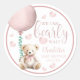 Dress up your baby shower treats and favours with this adorable pink "We Can Bearly Wait" teddy bear sticker. Featuring a watercolor bear, soft pink balloon with eucalyptus string, and heart details, this round sticker is perfect for cupcake toppers, party favours, or envelope seals. A sweet and cohesive touch for your baby girl’s bear-themed celebration.