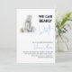 Watercolor Polar Bear Mummy with little bear and all bear family together in the back side and calligraphy script phrase "We can Bearly Wait!" in white and blue colours. Great theme ideas for the Boy Baby Shower Party. Easy to personalise with your text. Matching items and other winter baby shower invites with this design you can find at Polar Bear collection in my shop PatternDigitPics. If you have some special request, feel free to send me e-mail to: t.dyomushkina@gmail.com