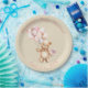 Personalise these cute teddy bear plates with the Momma to be's name and the baby shower date, with the easy to use customise it button. The design features an adorable fluffy teddy bear floating down with balloons. She's also holding a fancy rattle in her hand that is adorned with ribbons and bows. Coordinating party items available in our shop!