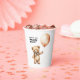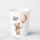 We can bearly wait baby shower paper cups , featuring a teddy holding a balloon all on a white background , a modern minimalistic design with beautiful detail to the graphics , painted in watercolor paint. ideal for a modern gender neutral baby shower.