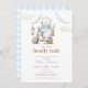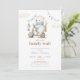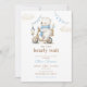 This Boy Baby Shower Invitation features a cute watercolor illustration of a white teddy bear riding a scooter with the saying "we can bearly wait" in a classic, elegant type treatment. Personalise it with your event details. A beautiful invitation, perfect for your event!