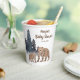 This neutral winter baby shower paper cup design was created in a Japandi style with Scandi and Japanese elements. The design features beautiful Hygge styled mum and baby bears in a snowy winter forest scene. -by Lovin' Life