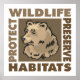 Bears and their habitats are the focus of this one-of-a-kind design that features an image of a bear and words that say: PROTECT WILDLIFE - PRESERVE HABITATS. If you love nature, the great outdoors and especially bears, you'll love this design. Advocate for human beings to be environmentally responsible!