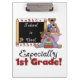 A great clipboard for first grade teachers, features three adorable teddy bears with pencils and books, a black board, and text that reads School is Cool Especially 1st Grade!