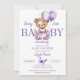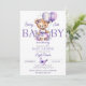 Beary cute girl teddy bear purple lavender balloons baby shower template invitation instant digital download, watercolor teddy bear wearing a dress and a hair bow with purple balloons purple teddy bear girls baby shower invitation.