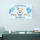 Beary first happy birthday party personalised printed banner, watercolor cute teddy bear dressed up in pant and a bow tie holding a blue balloon party banner for boys 1st birthday party