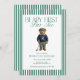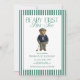 Celebrate your little one’s first birthday with this Beary First Par-Tee golf birthday invitation featuring a classic teddy bear golfer and bold green stripes. A preppy, elegant design perfect for a golf-themed first birthday party, country club celebration, or classic green party decor.