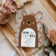 This sweet “Beary Much” thank you card was created to say thanks in the warmest way. A gentle woodland bear, cozy rainbow pattern, and soft neutral colors come together to celebrate love, kindness, and all the thoughtful moments shared on this special day.