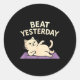 Beat Yesterday Funny Cat Yoga Mat Classic Round Sticker