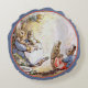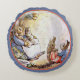 Personalise this round pillow printed with a cute Beatrix Potter illustration art image of a bunny family. Created in soft peach orange, blues and browns with a circle border accent. Nice nursery or toddler room accent, coordinates with lamps, clock, and other nursery decor items at www.zazzle.com/kidsunique