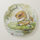 Beautiful and classic Beatrix Potter Mr. Jeremy Fisher frog art on a round pillow for your nursery. Personalise it in just a few clicks.