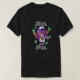 I give wanted to give this a 4 instead of a 5 because these Basic DARK T0shirts run unexpectedly SLIM or Narrow. Which is great if you do not have a potbelly, but I have a paunch. It isn't the shirt's fault that I've got a beer belly. The design and shirt itself is a quality cotton shirt. The color is more of a deep purple, but still a very pretty color. The Basic DARK T-shirts run a bit SLIMMER than the Basic Ts. The neck is a fraction narrower (or seems to be narrower) also. I'm a paunchy middle-aged woman and my neck is 12 inches (31cm) thick and the neckline fell about the same as in the photo of the man, and I had the desire to tug it a bit. So if you're a thick necked man or like loose shirts, be aware these are slimmer shirts. Once I get rid of my lockdown paunch it'll look great. The shirt washed well in cold water with no apparent bleeding. We don't have a dryer, so it hung dry. Did not shrink. Love the colors and the design. The design looks smaller on my shirt than it does on the model on-line. But still, it looks good on the shirt. The printing looks as it does on the model, just the size seems fractionally smaller. Washed garment in cold water, hung dry and design appeared unaffected.