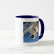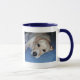 Yellow Lab coffee mug with blue handle and rim. Copyright lable on back so it doesn't disturb picture.
