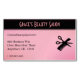 This pink design is perfect for beauticians with a quality design on an equally fine product ready for you to customise. A scissor and comb is crisscross below the business name and aside of the address information.