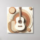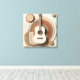 Central acoustic guitar in soft blush pink, muted lavender, and champagne gold, surrounded by flowing 3D geometric shapes. Scandinavian boho minimal style, soft ambient shadows, flat clean artwork. Canvas print perfect for music lovers or contemporary home décor.