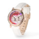 An elegant rose gold watch with a beautiful red, blue and pink liquified abstract design. This pretty watch comes with an elegant white leather wristband. The watch face has a text message and a photo. Text and photos are customisable, and can be easily personalised to fit your needs. This unique and beautiful watch is the best gift for your wife, girlfriend and mum. Great gift for birthday, wedding, anniversary, holiday, Valentine’s Day, Mother’s Day , and for yourself!