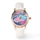 An elegant rose gold watch with a beautiful pink and blue liquified abstract design. This pretty watch comes with an elegant white leather wristband. The watch face has a text message. Text and photos are customisable, and can be easily personalised to fit your needs. This unique and beautiful watch is the best gift for your wife, girlfriend and mum. Great gift for birthday, wedding, anniversary, holiday, Valentine’s Day, Mother’s Day , and for yourself!
