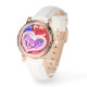 An elegant rose gold watch with a beautiful pink, red and blue liquified abstract design. This pretty watch comes with an elegant white leather wristband. The watch face has a text message and 4 photos. Text and photos are customisable, and can be easily personalised to fit your needs. This unique and beautiful watch is the best gift for your wife, girlfriend and mum. Great gift for birthday, wedding, anniversary, holiday, Valentine’s Day, Mother’s Day , and for yourself!