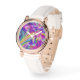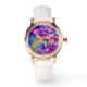 An elegant rose gold watch with a beautiful red, blue and pink liquified abstract design. This pretty watch comes with an elegant white leather wristband. The watch face has a text message. Text and photos are customisable, and can be easily personalised to fit your needs. This unique and beautiful watch is the best gift for your wife, girlfriend and mum. Great gift for birthday, wedding, anniversary, holiday, Valentine’s Day, Mother’s Day , and for yourself!