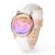 An elegant rose gold watch with a beautiful pink, red and blue liquified abstract design. This pretty watch comes with an elegant white leather wristband. The watch face has a text message and 4 photos. Text and photos are customisable, and can be easily personalised to fit your needs. This unique and beautiful watch is the best gift for your wife, girlfriend and mum. Great gift for birthday, wedding, anniversary, holiday, Valentine’s Day, Mother’s Day , and for yourself!