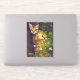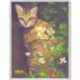 Sticker in an illustration of a beautiful Abyssinian cat in a midnight garden, with night blooming flowers