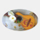 Beautiful acoustic guitar music note white linen fabric orange yellow flowers fresh white flowers effects image print
