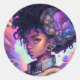 Beautiful Afro Haired Girl Classic Round Sticker