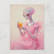 Beautiful Alien Lady in Pink With Orange Juice Postcard