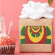 The primary colours are vibrant and saturated, featuring rich reds, greens, and yellows. These colours are arranged in a repeating pattern, generating a dynamic visual effect that captures attention and evokes energy.