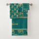 Beautiful green bath towel set featuring faux golden ancient Egyptian eye symbol and hieroglyphs by PiccoGrande.