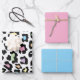 A beautiful and colourful leopard print sheet, this wrapping paper has a colourful purple, pink, yellow, green and blue design on a white background, a blue and pink wrapping paper. Order yours today!