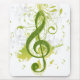 Beautiful and cool music notes with splatter swirls and leaves in green and yellow soft colours image