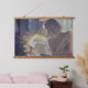 The polyester fabric displayed many wrinkles and several sharp creases throughout.  At the bottom of the tapestry, I noticed a bulge in the fabric because it was not pulled tight enough before being connected to the wooden boards.  It took me over an hour to spay water on the tapestry before putting it on an ironing board where I used a warm iron over a polyester cloth to remove the wrinkles and creases in the material.   I was able to get out the wrinkles and creases that made that tapestry look as beautiful as its picture.