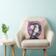 Throw pillow in an anime style portrait of a beautiful girl, crowned with soft pink and white flowers
