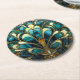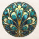 Beautiful Art Deco Turquoise Peacock Feathers Round Paper Coaster