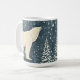 A fun artsy design featuring an enchanting majestic Polar Bear looking up into the Artic night sky, while large fluffy white snowflakes are falling down all around him.
