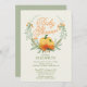 Modern Fall Wreath Baby Shower Invitation featuring beautiful green fall leaf wreath with two pumpkins & dainty flowers with modern typography. Perfect for a girls baby shower, boys baby shower or gender neutral baby shower for a fall autumn baby shower