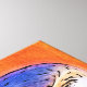 A creative orange and purple toned digital rendering of a beautiful barn owl with a white face.
