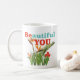 This motivational white mug spreads a positive message, featuring the words “BE YOU” Beautiful. The bright colours add a pop of joy and positivity to any space. Personalise it with your initials on the back side. Give this mug to yourself or anyone for an affirmation—YOU ARE BEAUTIFUL!
